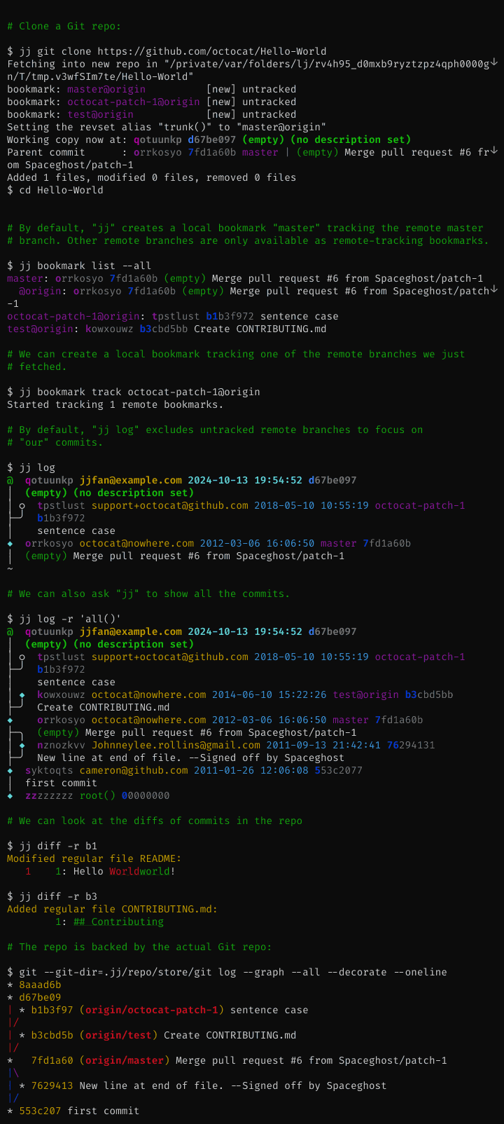 Here is how you can explore a GitHub repository with jj.