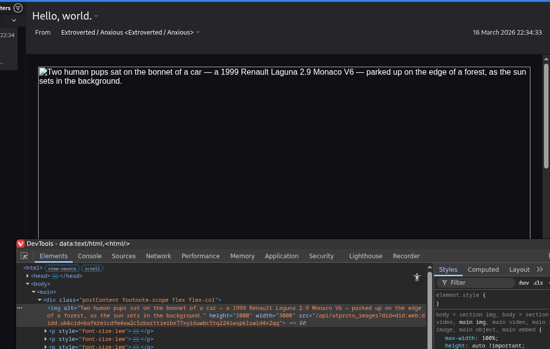 - Images fail to load (the embedded image is missing the host, and just starts as