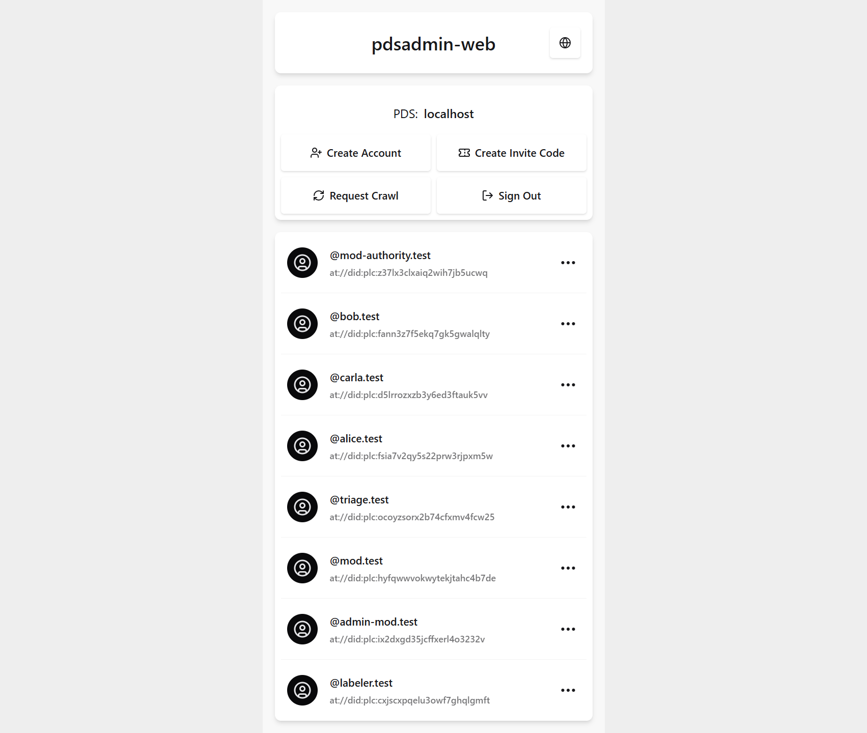 You can signin to the local PDS with the following credentials: