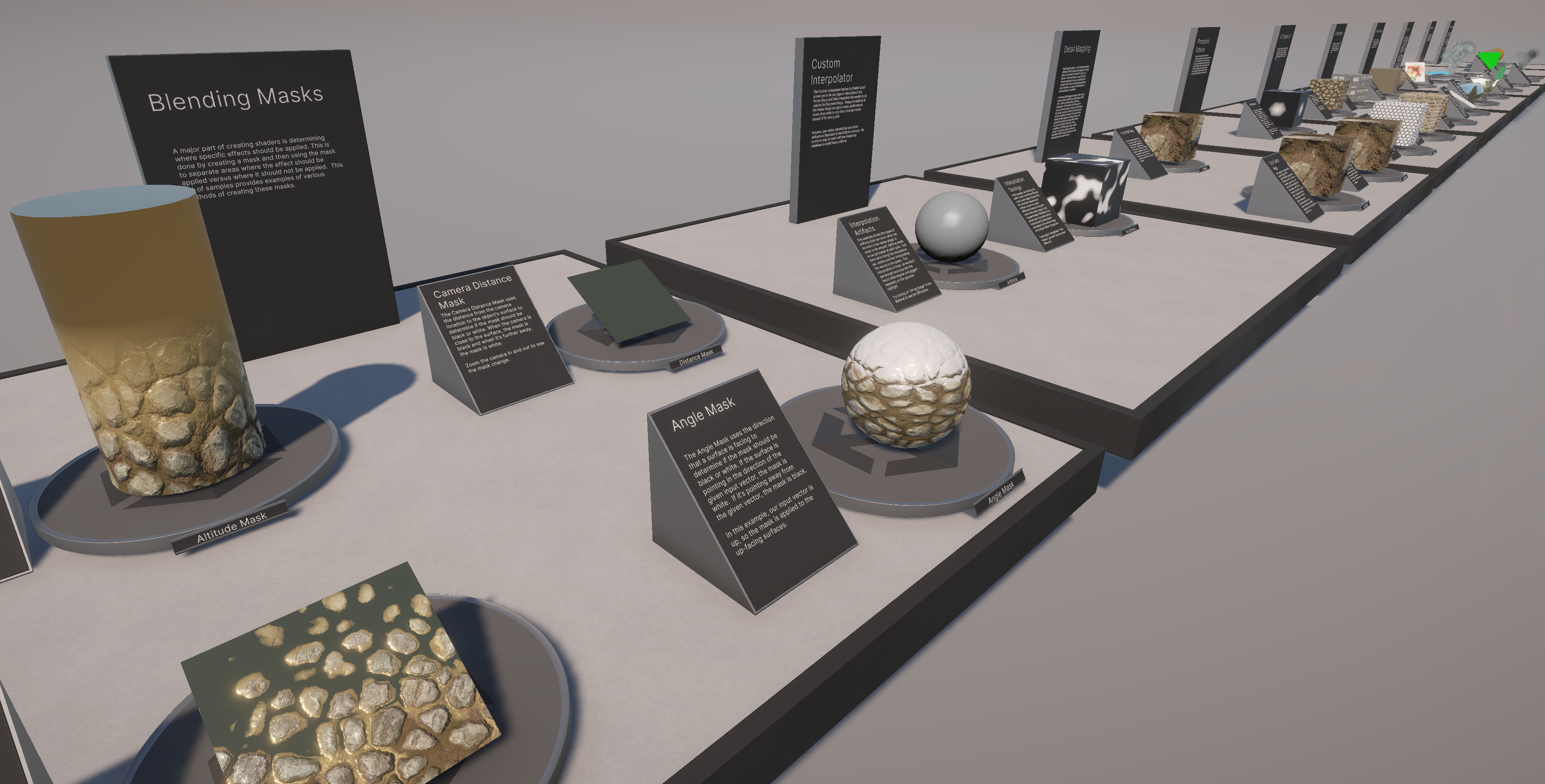 | This set of Shader Graph assets provides reference material for the nodes available in the Shader Graph node library. Each graph contains a description for a specific node, examples of how it can be used, and useful tips. Some example assets also show a break-down of the math that the node is doing. You can use these samples along with the documentation to learn more about the behavior of individual nodes. |