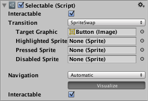 Within a selectable component there are several transition options depending on what state the selectable is currently in. The different states are: normal, highlighted, pressed and disabled.