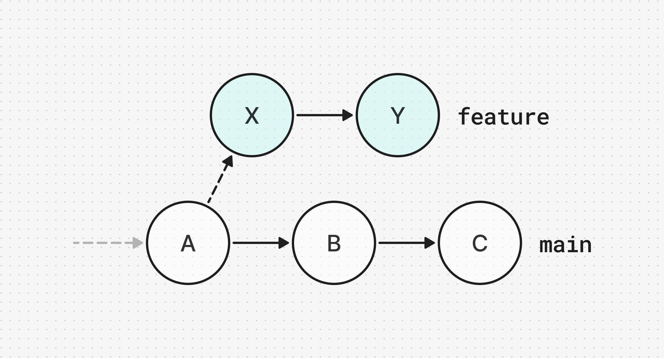 When you create a PR from a branch, we create a "patch" by calculating the difference between your branch and the target branch. Consider this scenario: